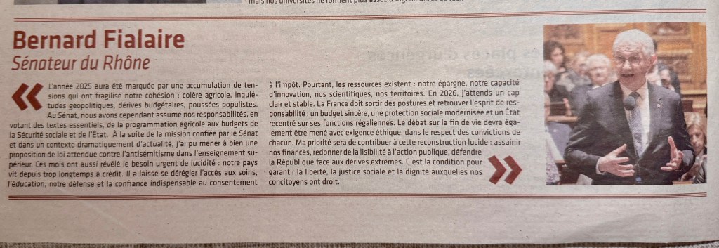 En 2026, j’attends un cap clair et stable. La France doit sortir des postures et retrouver l’esprit de responsabilité : un budget sincère, une protection sociale modernisée, et un État recentré sur ses fonctions régaliennes.