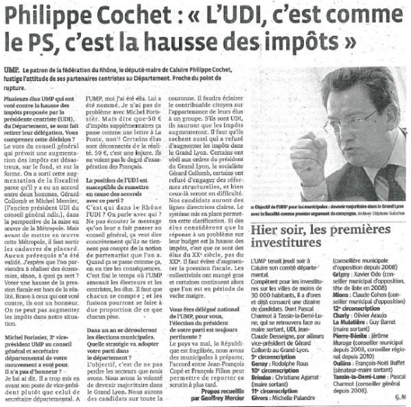 Il y a aussi dans le Rhône les petites manœuvres politiciennes de conseillers généraux UMP qui veulent prendre la place de Maires UDI l’année prochaine et qui se servent de leur mandat au Conseil Général pour commencer leur campagne.