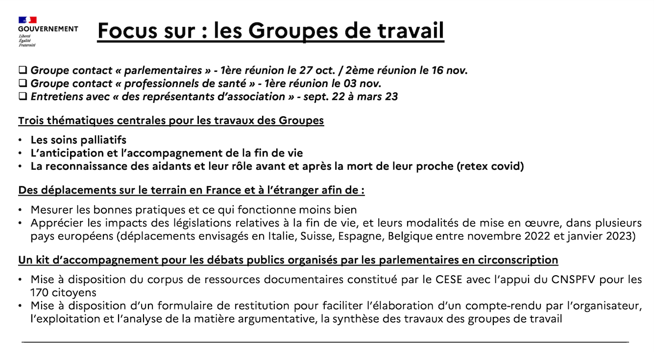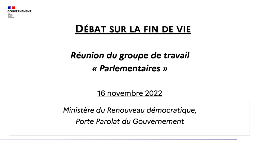 Débat sur la fin de vie – Réunion du groupe de travail – « Parlementaires » 16 novembre 2022