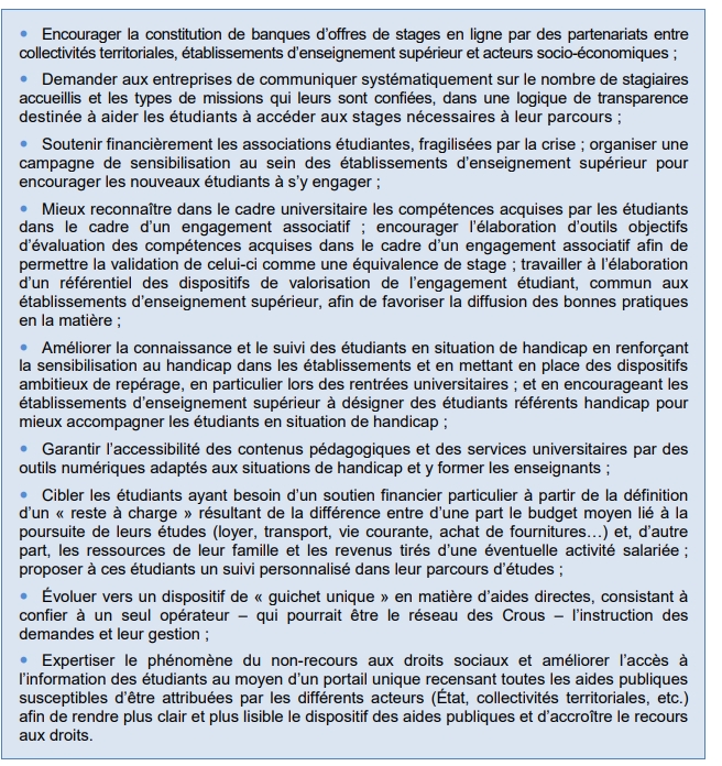 Dans cet objectif, ils préconisent de : systématiser l’information des étudiants en amont, au moment du paiement de la CVEC, par exemple via la diffusion d’un livret d’information ou d’un guide pratique ;